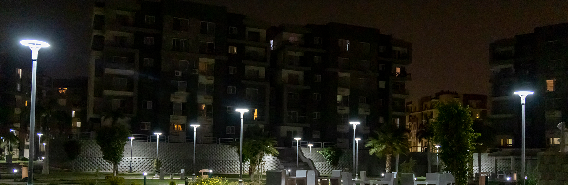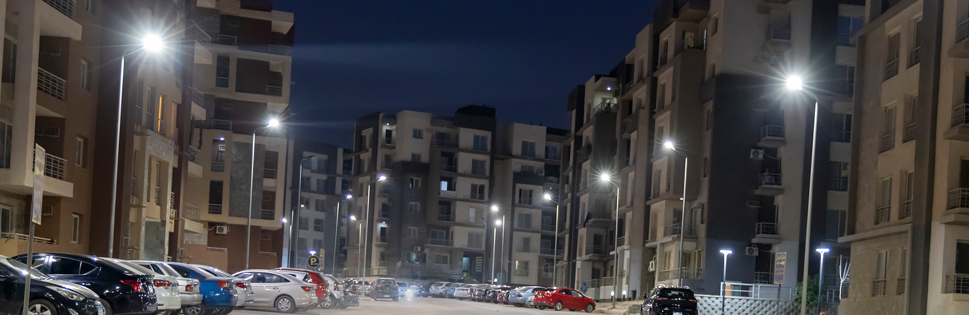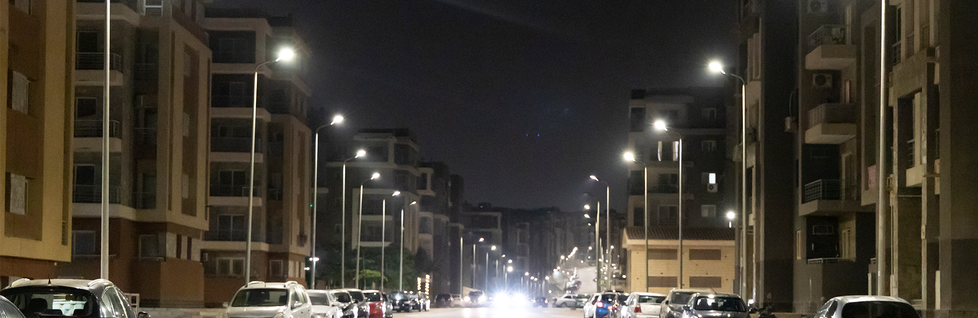 The network of public lighting of roads was implemented with poles of height (8) meters. Lamps produced by El Nassera Group Company with a number of (1070) columns and a network of lighting cables sector (4 * 25) mm2 with a total length of (36000) meters. In addition to the works of landscape, which contains polyards with a height of (60) cm and decorative columns with a height of (4) meters longitudinal.